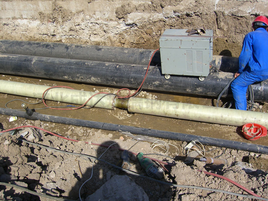 由計(jì)算機(jī)控制,在芯模上按規(guī)定的與纖維纏繞玻璃鋼管相同的工藝制造內(nèi)襯,凝膠后按設(shè)計(jì)好的線型和厚度纏繞結(jié)構(gòu)層,并將石英砂與樹(shù)脂混合的砂漿纏在結(jié)構(gòu)層中,最后纏繞外保護(hù)層。